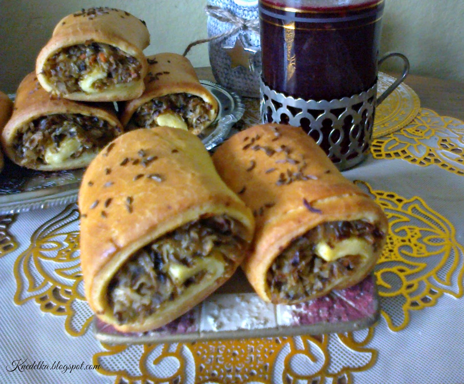Takie oto smaczne kapuśniaczki z nadzieniem z kapusty kiszonej i pieczarek powstały na kolację wigilijną. Zrobiłam je jako dodatek do barszczu czerwonego. Troszkę czasu trzeba w nie włożyć, ale to wszystko wynagradza nam ich smak. Po upieczeniu są lekko kruche, a po wystygnięciu mięciutkie. Jeśli nie lubimy posypki z kminku możemy go zastąpić makiem, albo niczym nie posypywać, możemy również kombinować z nadzieniem :).